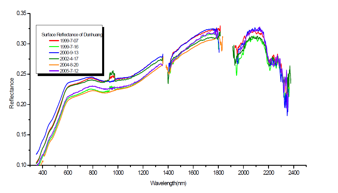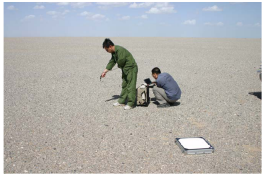 This site was operational radiometric calibration and validation for Chinese satellite sensors in 2001, and located on the east edge of the Kumutage Penniform Desert in Gansu province, South-West China. It is a Gobi desert, and about 35 km west