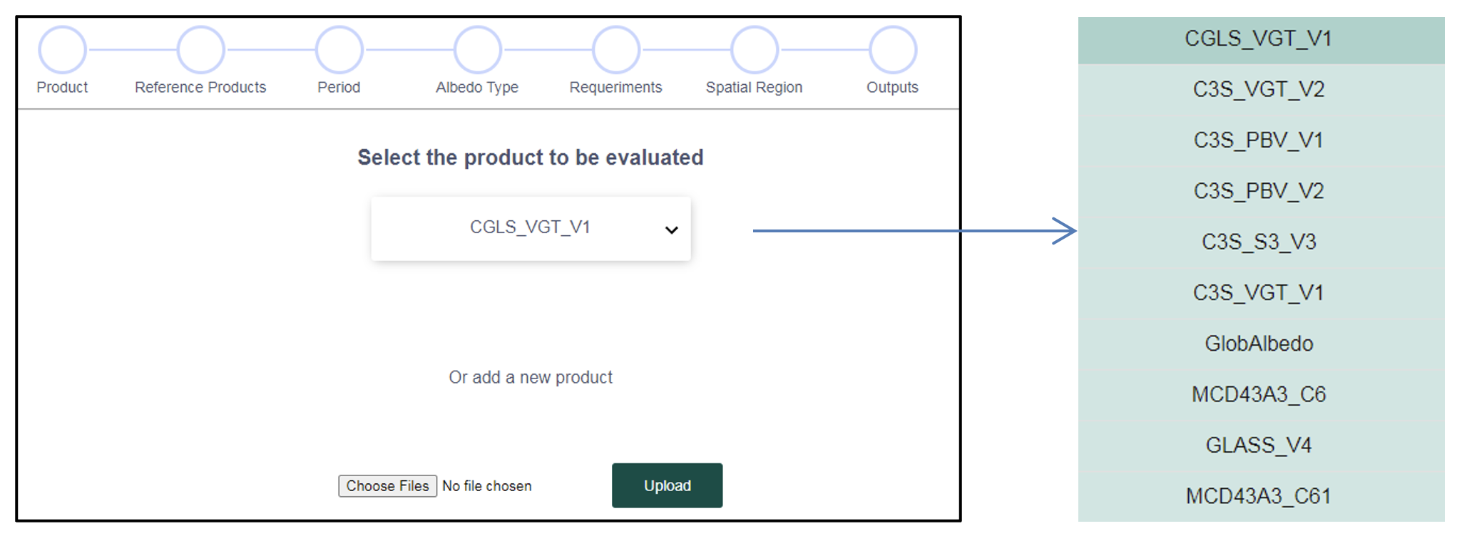 2. Specify the product being validated and the reference products. Select from existing database of products or import new products.